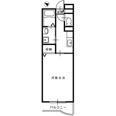 全室単身者専用1Kの間取りとなっています。